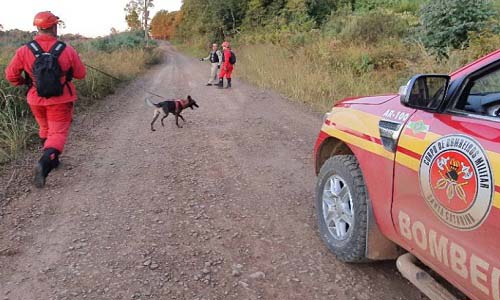 Conforme o Corpo de Bombeiros, todos os cães apontaram que o idoso possivelmente foi em direção a estrada principal, a qual da acesso ao bairro Limeira. A família também repassou um histórico sobre o idoso, o qual teria costume de caminhar por longos trechos em um único dia.