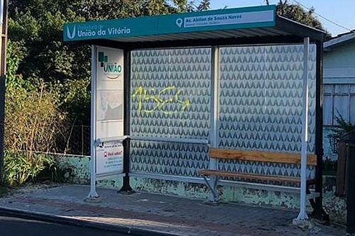 O que chamou a atenção além do novo abrigo e da pavimentação asfáltica na avenida Abilon de Souza Naves, foi o ato de vandalismo já cometido contra o patrimônio público, que foi a pichação com tinta amarela no ponto de ônibus.