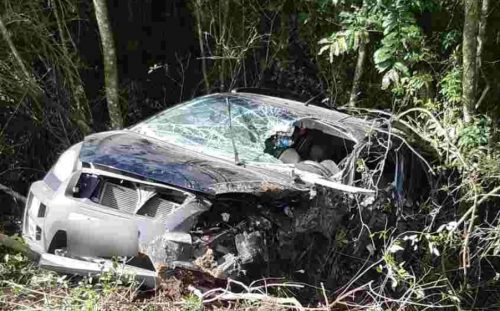 Um grave acidente deixou um carro destruído durante a manhã dessa quinta-feira, dia 02 de julho, na rodovia BR-476, na localidade do Lajeadinho, na cidade de São Mateus do Sul. Por sorte, o motorista sofreu apenas ferimentos leves.