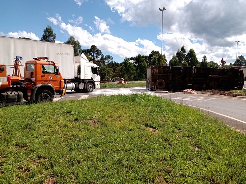 O caminhão com placas de Treze Tílias/SC, descia a serra de Santa Rosa, na PR-170, quando apresentou problemas mecânicos, vindo a ficar desgovernado e tombar no trevo. Por sorte o motorista não se feriu. Segundo informações, quando a Polícia Rodoviária Federal – PRF chegou ao local, os saqueadores dispersaram, mas boa parte da carga foi levada.