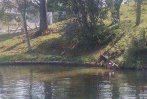 A ocorrência foi atendida por volta das 10 horas da manhã desta quarta-feira, dia 21, na região do bairro São Pedro. No local, os bombeiros encontraram o animal dentro da água, o qual não conseguia sair sozinho.