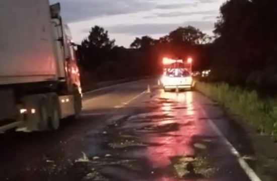 De acordo com informações, o acidente aconteceu na altura do KM 213, na região da Lapa. O motorista teria perdido o controle do seu caminhão Scania 420 de cor branca carregado com papel e acabou tombando em uma curva.