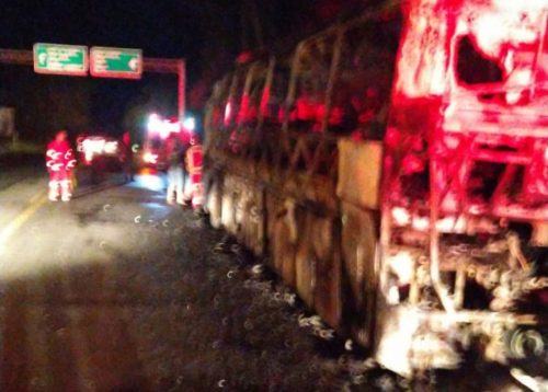 Um ônibus da empresa Bitur com passageiros da cidade de União da Vitória apresentou problemas mecânicos e pegou fogo durante a noite desta segunda-feira, dia 11 de outubro, por volta das 20 horas.