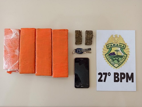 o caso ocorreu as margens da rodovia BR-153, aonde o suspeito foi localizado em uma área de mata, sendo encontrado com o mesmo quatro tabletes de maconha e uma porção pequena a granel.