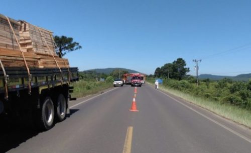 A mulher foi imobilizada e conduzida junto do passageiro para atendimento médico no Hospital São Braz. Dois caminhões se envolveram na colisão. Num Mercedes Benz de cor amarela, o condutor de 44 anos de idade, “encontrava-se consciente, orientado e relatou que teria sido picado por abelhas, mas recusou encaminhamento ao hospital e foi liberado no local assinando termo de recusa”, descreve a nota do Corpo de Bombeiros.