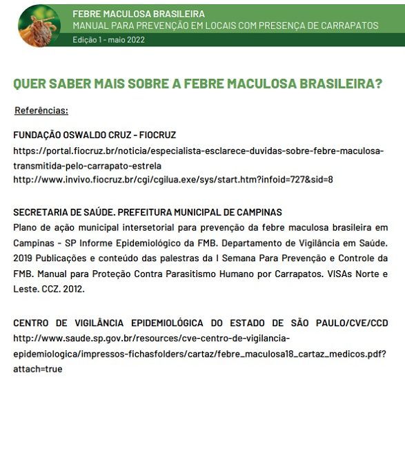 A febre maculosa é uma zoonose, ou seja, uma doença naturalmente transmitida entre animais e o homem. Ela é causada pela bactéria Rickettsia rickettsii que é transmitida através da picada de carrapato-estrela infectado. É uma doença grave e, se não for tratada precoce e corretamente, pode levar a óbito em uma semana após o início dos sintomas.