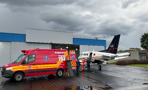 O Corpo de Bombeiros foi responsável pelo transporte da paciente do aeroporto da Área Industrial de Porto União até o hospital São Brás, onde a mesma foi hospitalizada.