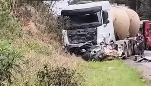 Conforme informações, o acidente foi registrado na entrada para a localidade de Vargem Grande, em Paula Freitas e envolveu um caminhão Scania com placas de Balsa Nova/PR e um veículo Honda/City com placas de Joinville/SC.
