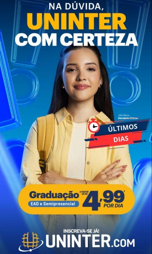 A Uninter de União da Vitória está com mais uma oportunidade imperdível para quem sonha em investir no seu futuro e iniciar a sua graduação. A super promoção que está ativa garante que você faça a graduação EaD e Semipresencial a partir de R$ 4,99 por dia.