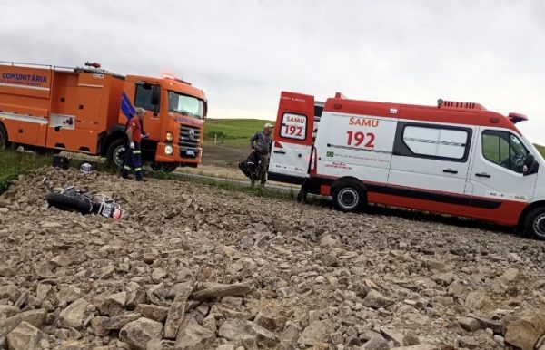 Por volta das 17h10 deste sábado, equipes do Corpo de Bombeiros e do Samu de General Carneiro foram acionadas para atender a um acidente de motocicleta na BR-153, km 01, já em trecho catarinense, na curva do Bulão.