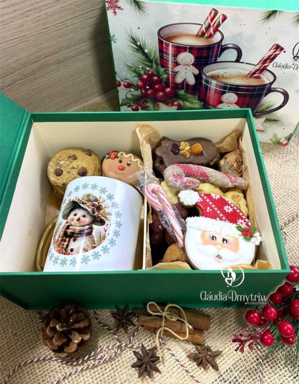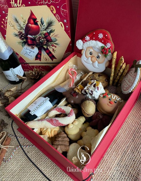 A confeiteira também dá dicas para as famílias que querem comprar biscoitos natalinos. “Tenho várias opções para presentes, em lindas caixas com decorações natalinas: dentre elas caixa com mini espumante Chandon e 16 sabores de biscoitos, caixa com caneca de porcelana e 13 sabores de biscoitos, caixa com geleia artesanal, entre outras opções de presente, como as tradicionais latas de Natal. Para quem ama colecionar latas, é a opção ideal de presente”, indica. “Para decoração tem o Noel Mesa Posta, que pode ser personalizado com o nome da pessoa e a caixa Noite Feliz com o tema do Presépio”, destaca.