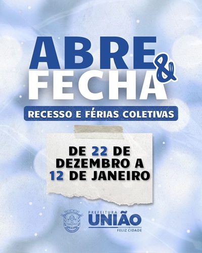 A Prefeitura de União da Vitória informa à população sobre o funcionamento dos serviços públicos durante o período de recesso e férias coletivas de fim de ano.