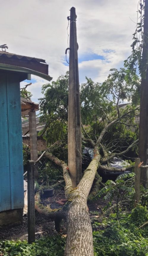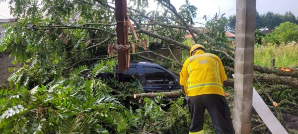 Em razão da proximidade da árvore com a rede elétrica, foi solicitado apoio da concessionária de energia elétrica CELESC. A empresa realizou a desenergização da rede pública, garantindo a segurança necessária para o trabalho da guarnição. Após a liberação do local, os bombeiros efetuaram o corte e a retirada dos galhos que estavam sobre a residência e o veículo, eliminando os riscos iminentes. Ao final da ocorrência, foram repassadas orientações de segurança ao responsável pelo imóvel.