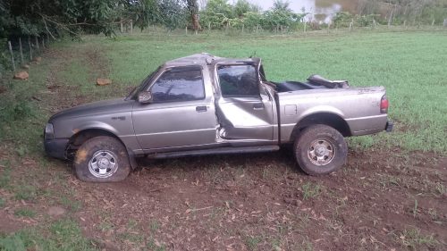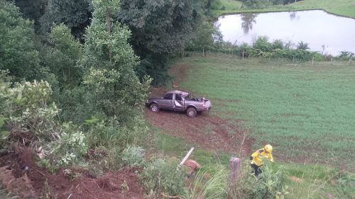 No local, os bombeiros confirmaram que uma caminhonete Ford Ranger, com placas do município de Caçador/SC, havia saído da pista e capotado. Três ocupantes já estavam fora do veículo no momento da chegada das equipes.