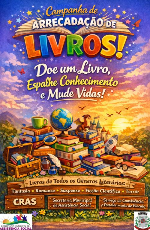 Com o slogan “Doe um livro, espalhe conhecimento e mude vidas!”, a campanha mobiliza a população de General Carneiro para a doação de livros de todos os gêneros literários, como fantasia, romance, suspense, ficção científica e terror, que serão destinados aos usuários dos serviços socioassistenciais.