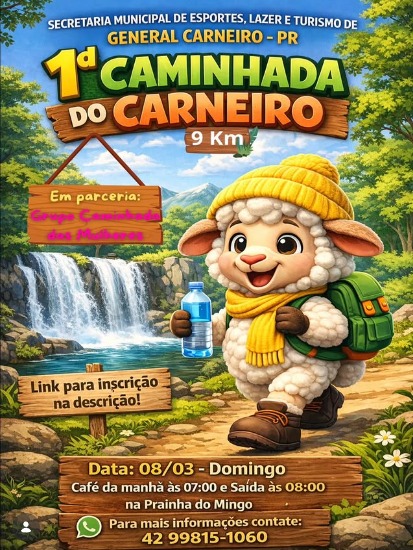 A comunidade de General Carneiro já pode se preparar para uma manhã especial de lazer, saúde e contato com a natureza. No dia 08 de março, acontece a 1ª Caminhada do Carneiro, um evento que promete reunir famílias, amigos e amantes da vida ao ar livre em um percurso repleto de belas paisagens, trilhas e cachoeiras.