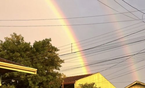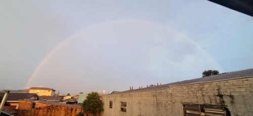 Após a chuva que atingiu as cidades de União da Vitória e Porto União, por volta das 18h, um arco-íris duplo surgiu no céu, chamando a atenção de moradores de toda a região.