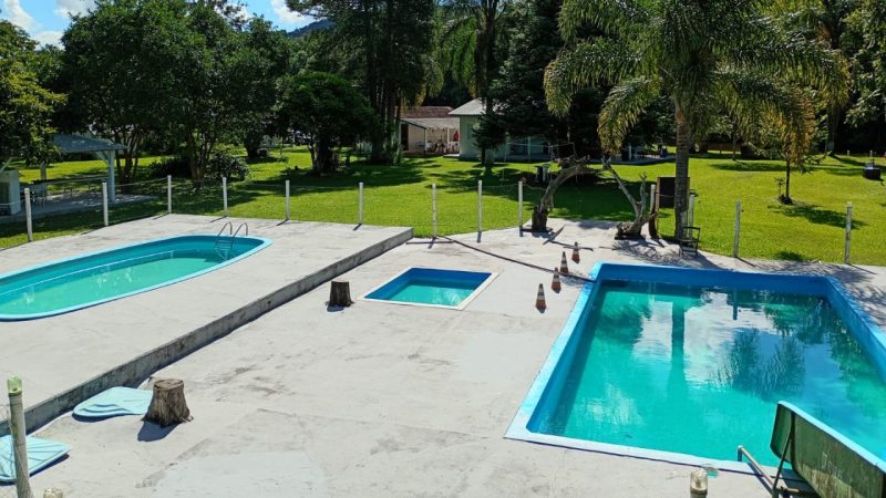 Entre os principais atrativos estão as piscinas para adultos e crianças, que garantem entretenimento para todas as idades. O espaço também conta com quiosques equipados com churrasqueiras, ideais para encontros em grupo, além de ampla área verde para quem prefere relaxar e aproveitar o contato com a natureza.