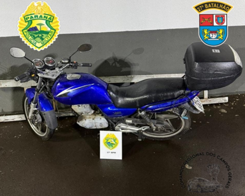 A Polícia Militar recuperou uma motocicleta furtada na noite desta sexta-feira, dia 6 de março, por volta das 20h30, no bairro São Basílio Magno, em União da Vitória. A ação ocorreu após denúncia de populares sobre um homem em atitude suspeita empurrando uma motocicleta pela via pública.