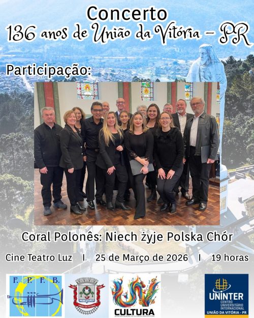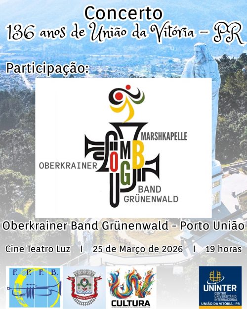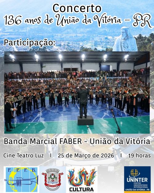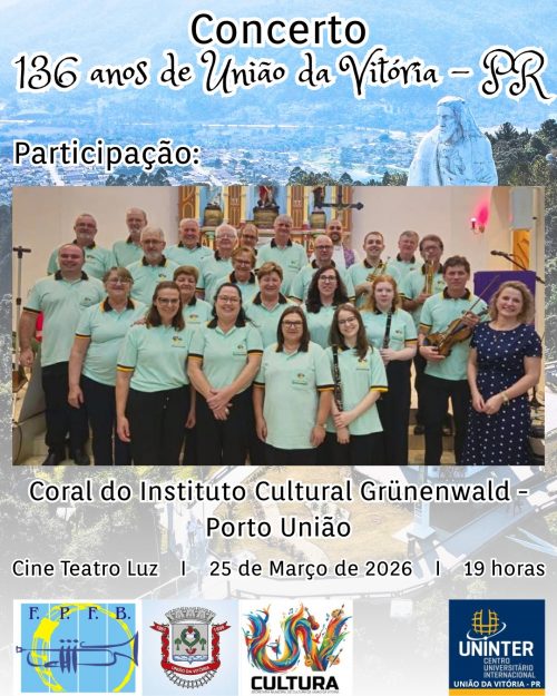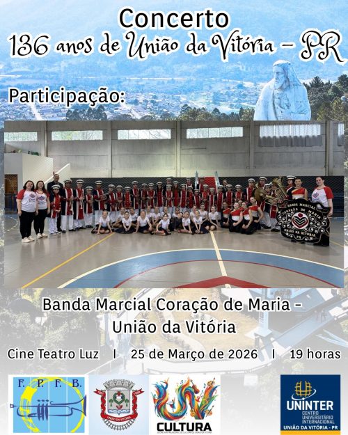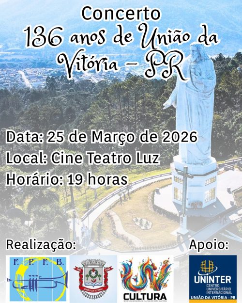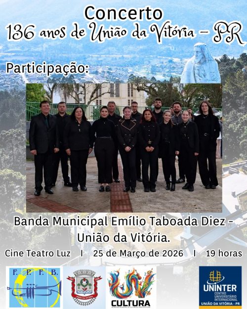O concerto é uma realização da Fundação Municipal de Cultura, com apoio da prefeitura e instituições parceiras, e faz parte da agenda especial preparada para celebrar mais um ano da história de União da Vitória.