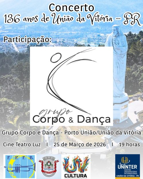 A programação de aniversário de União da Vitória ganha um destaque especial nesta semana com a realização de um concerto comemorativo que promete reunir música, dança e tradição no palco do Cine Teatro Luz.