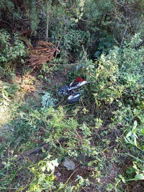 Um acidente de trânsito do tipo saída de pista mobilizou o Corpo de Bombeiros na tarde deste domingo (29), na rodovia SC-135, em Matos Costa. A ocorrência foi registrada por volta das 15h35, no km 44, trecho conhecido como Curva do Xuxa, envolvendo uma motocicleta com duas pessoas.