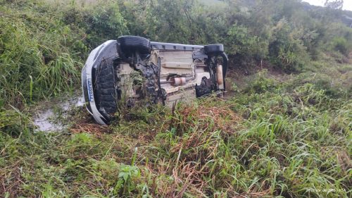 No local, os socorristas encontraram um Ford Focus lateralizado no lado direito do acostamento. De acordo com as informações repassadas pela guarnição, o veículo saiu da pista em meio à forte chuva que atingia a região no momento do acidente.