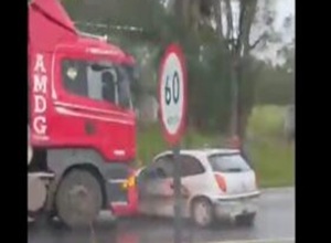 Grave acidente na BR-476 deixa motorista preso nas ferragens