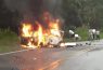 Plantão: carro pega fogo em grave acidente na PR-170 em General Carneiro