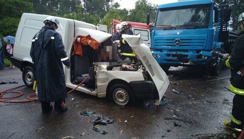 Caminhão de União da Vitória se envolve em acidente em Concórdia. Uma pessoa ficou gravemente ferida