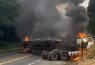 Caminhão sai da pista, tomba e é destruído por incêndio na BR-476