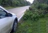 DER trabalha para remover árvores que caíram sobre a pista entre União da Vitória e Cruz Machado