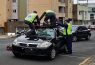 Adolescente é arremessada para teto de veículo em acidente no centro de Porto União
