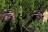 Caminhão cai em ribanceira na PR-447 em Cruz Machado e fica destruído. Motorista foi socorrido