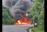Caminhão pega fogo após tombar na BR-476 e rodovia fica bloqueada