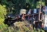 Caminhão tomba na BR-476 e motorista de 25 anos fica ferido
