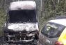 Van que foi levada em assalto é encontrada queimada. Motorista foi amarrado em uma árvore