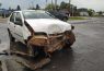 Carro fica com a frente destruída em acidente com caminhão na rotatória do Exército em Santa Rosa